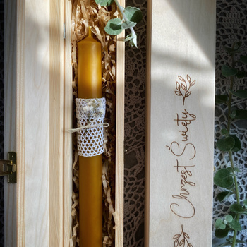 Gromnica w drewnianym pudełku Pierwsza Komunia Święta